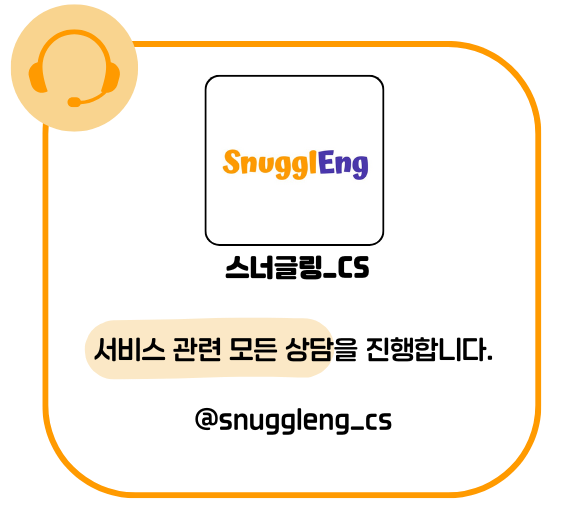 서비스 관련 모든 상담은 카카오톡 ‘스너글링 C/S’ 채널에서만 진행하니, 참고 부탁드립니다.